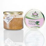 Brown sugar with essential oils, exfoliate , removes dead skin cells and softens the body